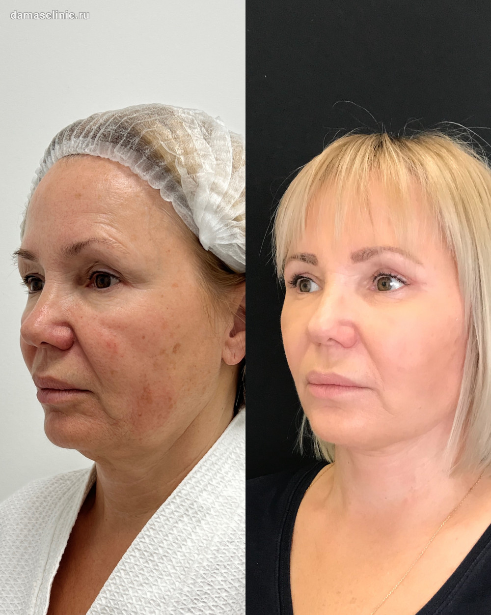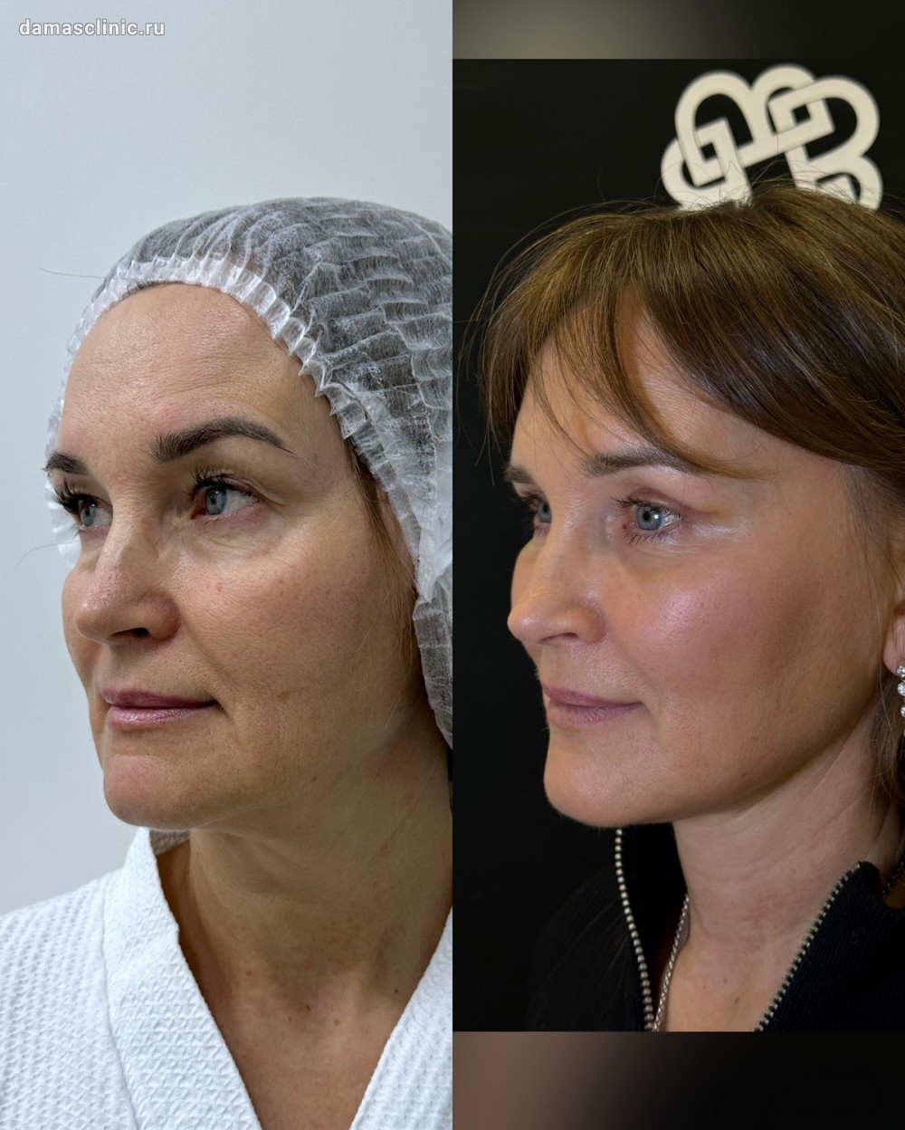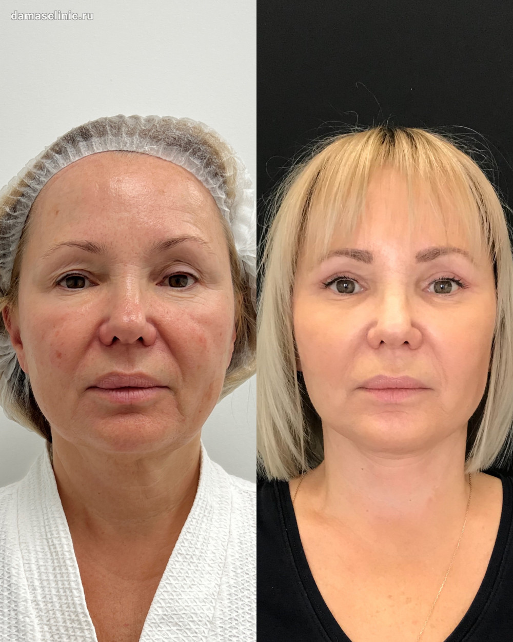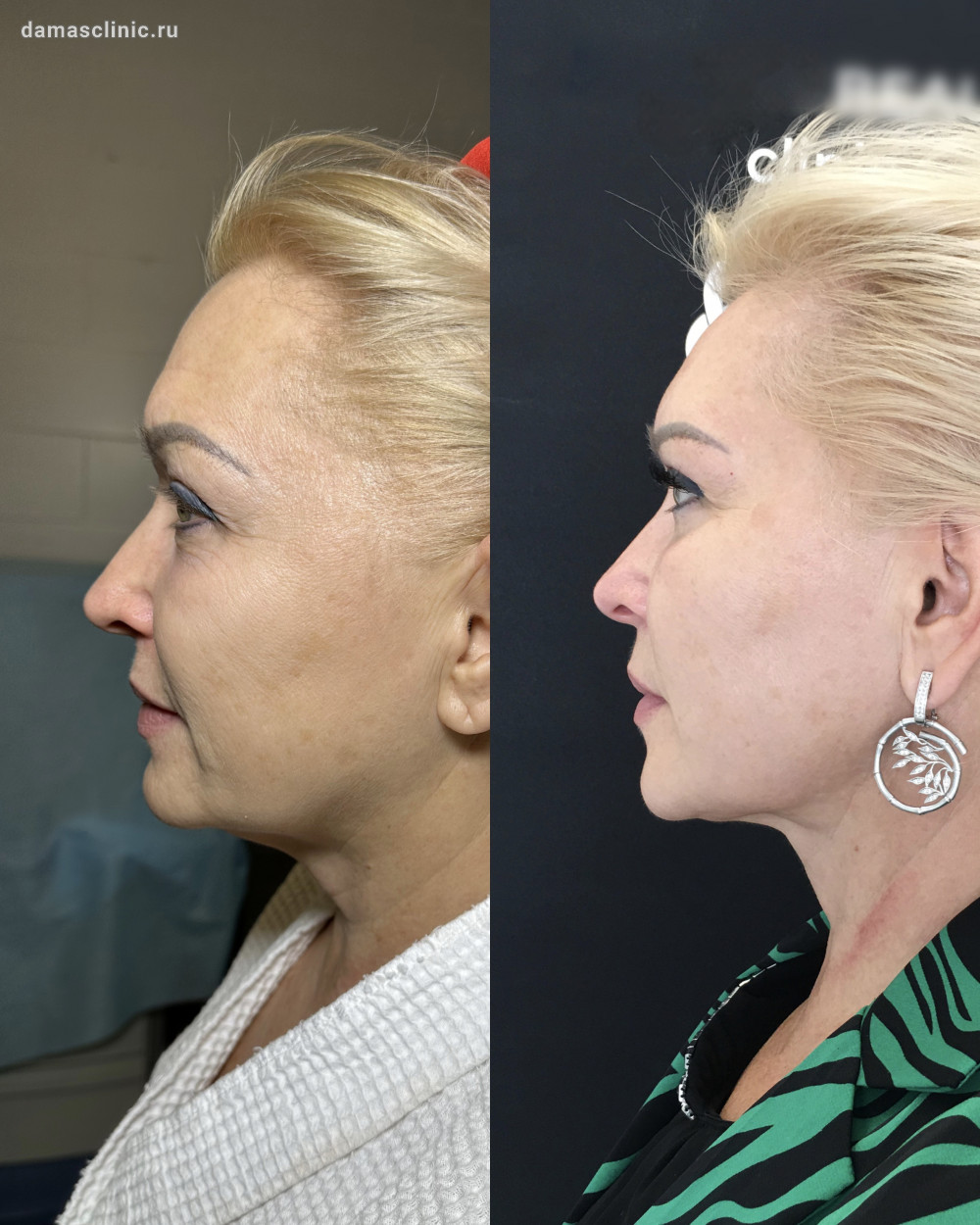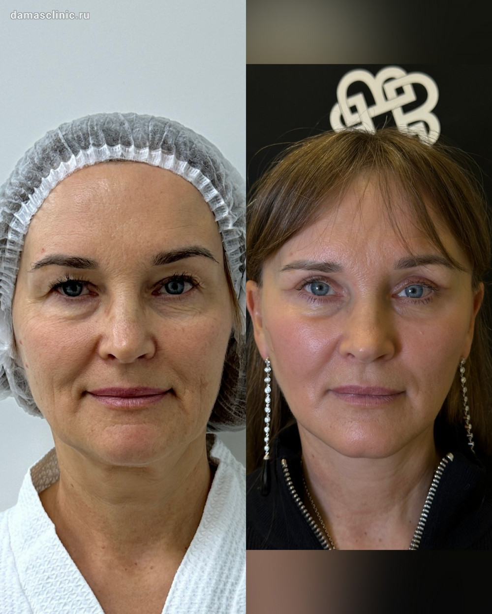 Комплексная пластика лица: SMAS-лифтинг нижней трети, подтяжка височной зоны, передняя платизмопластика и круговая пластика век до и в период первичной реабилитации. Работа доктора Олега Николаевича Банижа