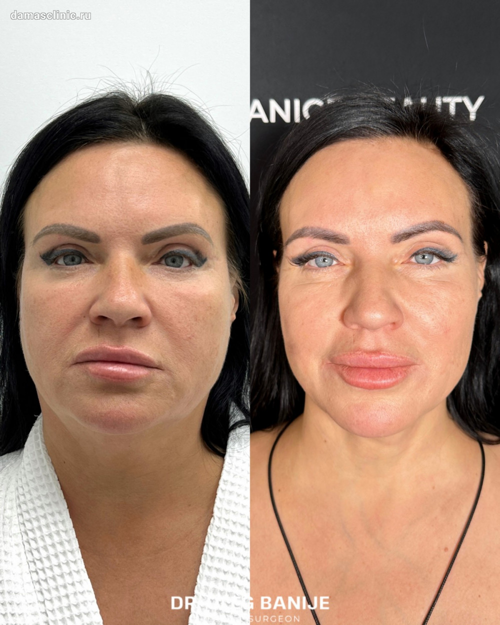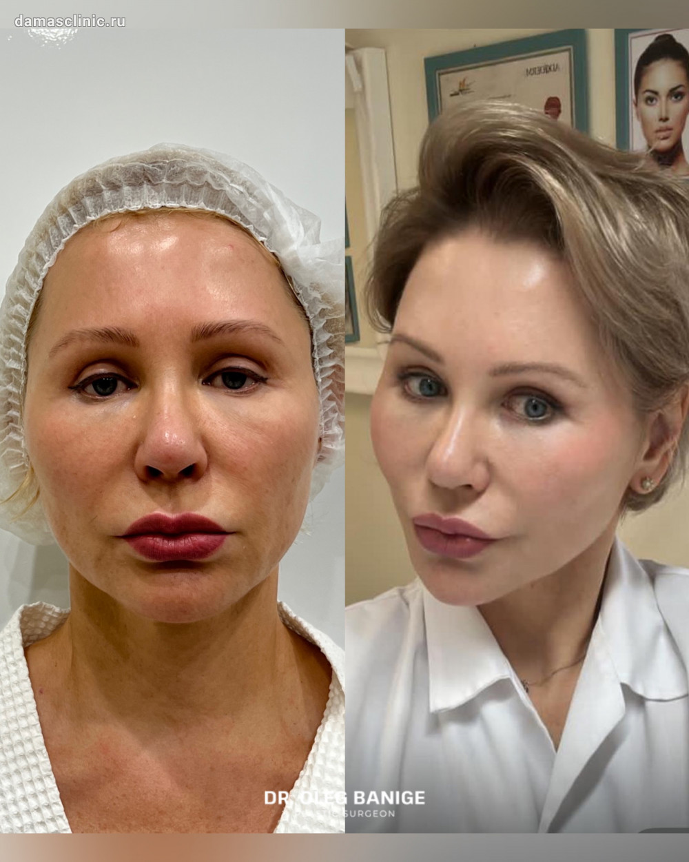 SMAS-лифтинг с пликатурой совмещенный с нитевым лифтингом до и на плановом осмотре. Работа доктора Олега Николаевича Банижа