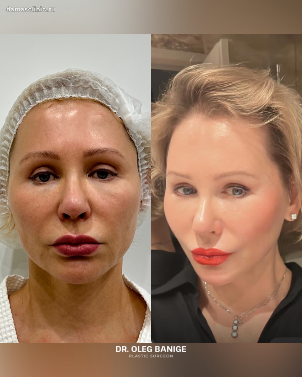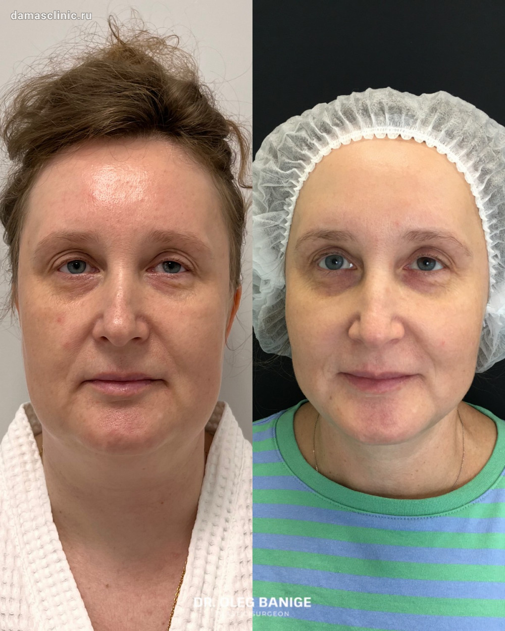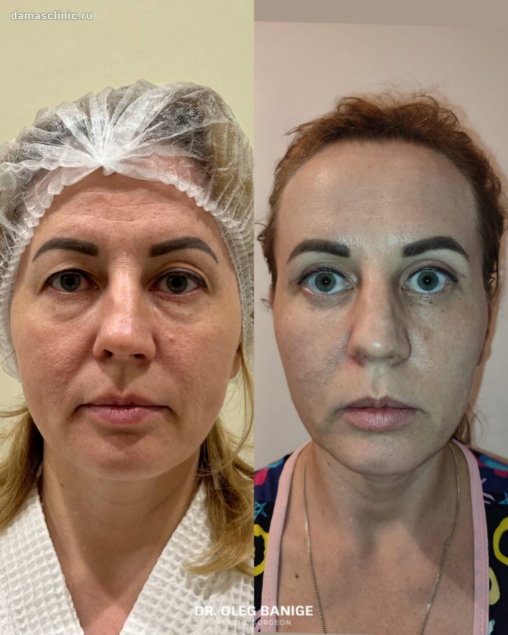 SMAS-лифтинг лица с Vaser-пликатурой, круговая блефаропластика до и в период первичной реабилитации. Работа доктора Олега Николаевича Банижа