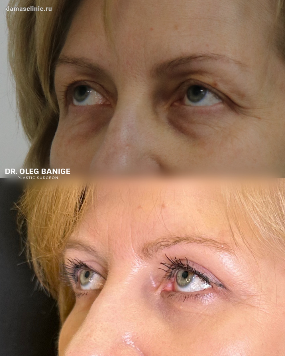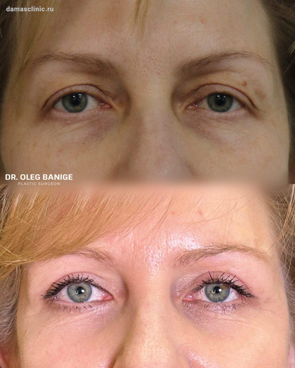 Круговая пластика век, совмещенная с SMAS - лифтингом лица и хирургическими нитями: до и после полной реабилитации. Работа доктора Олега Николаевича Банижа