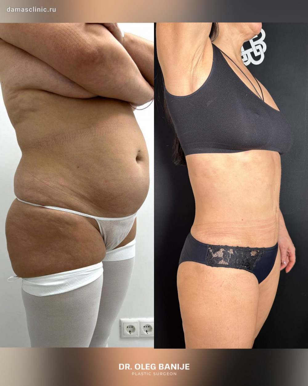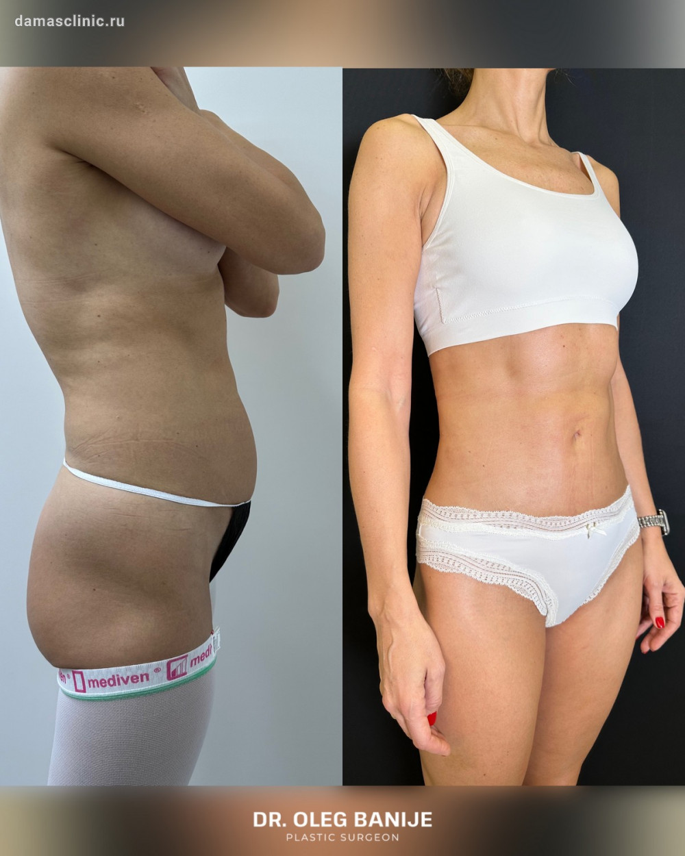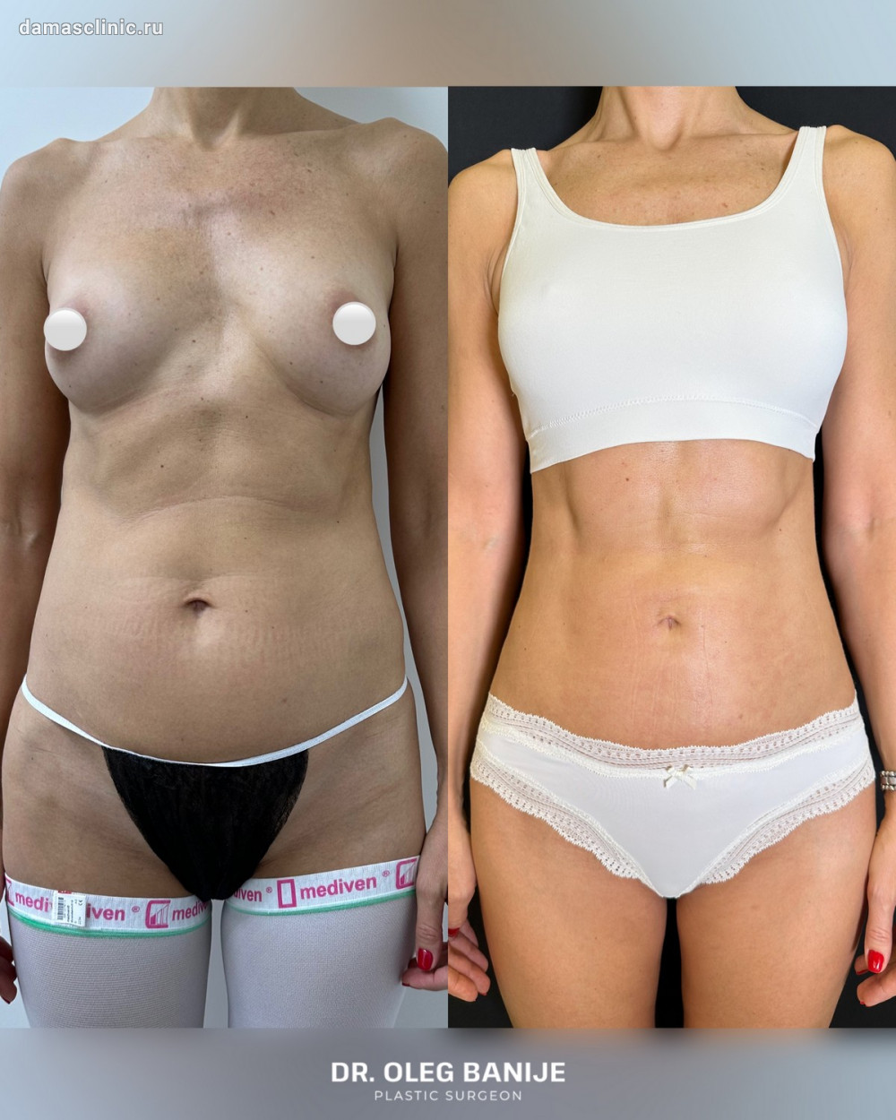 Липосакция тела совмещенная с классической абдоминопластикой и ушиванием диастаза до и в первичный реабилитационный период. Работа доктора Олега Николаевича Банижа