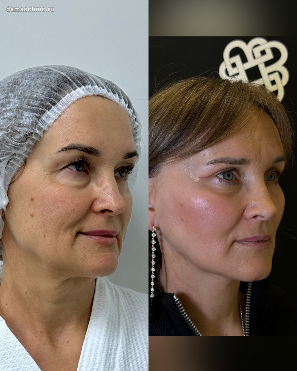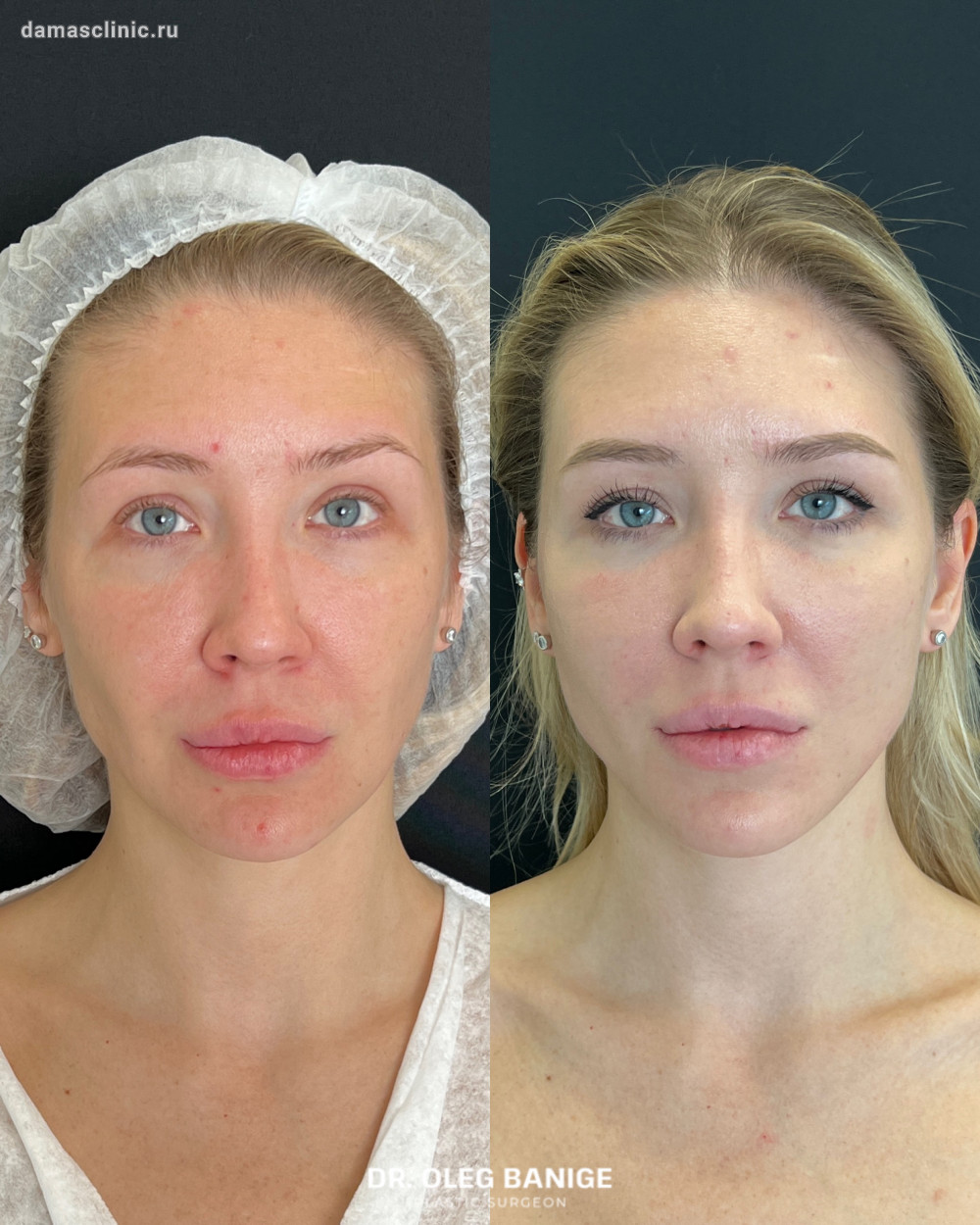 Нитевой лифтинг лица хирургическими и косметологическими нитями одномоментно до и через месяц. Работа доктора Олега Николаевича Банижа